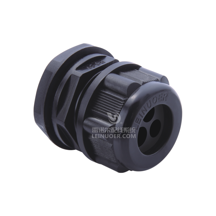 产品名称: LNE-KD 多孔塑料电缆防水接头产品材质: A.C.D.F部位采用尼龙制成,B.E部位采用丁腈橡胶制成。工作温度:-40℃至+100℃,短时可达+120℃。螺纹尺寸:德制(PG)产品颜色:黑色、灰色(特殊颜色可定做)。产品认证:RoHS、CE认证防护等级:IP68产品特性:特殊夹紧爪与密封件特殊之设计,配合迫紧头装配省时便利,夹紧电缆范围大,抗拉力特强,可防水、防尘、